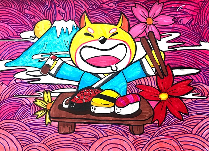 熊雅云 13岁 绘画《寿司的诱惑》指导老师:余青