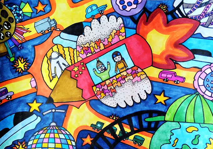狄拍米 12岁 绘画《漫步太空》指导老师:张晖